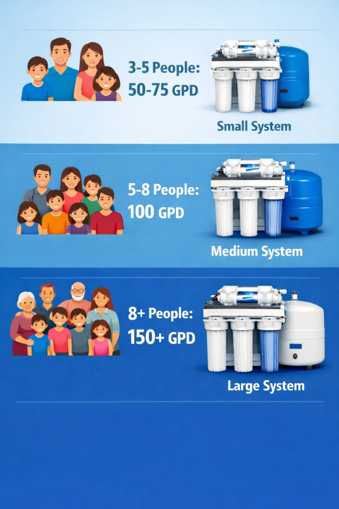 - 3-5 log: 50-75 GPD kaafi hai
